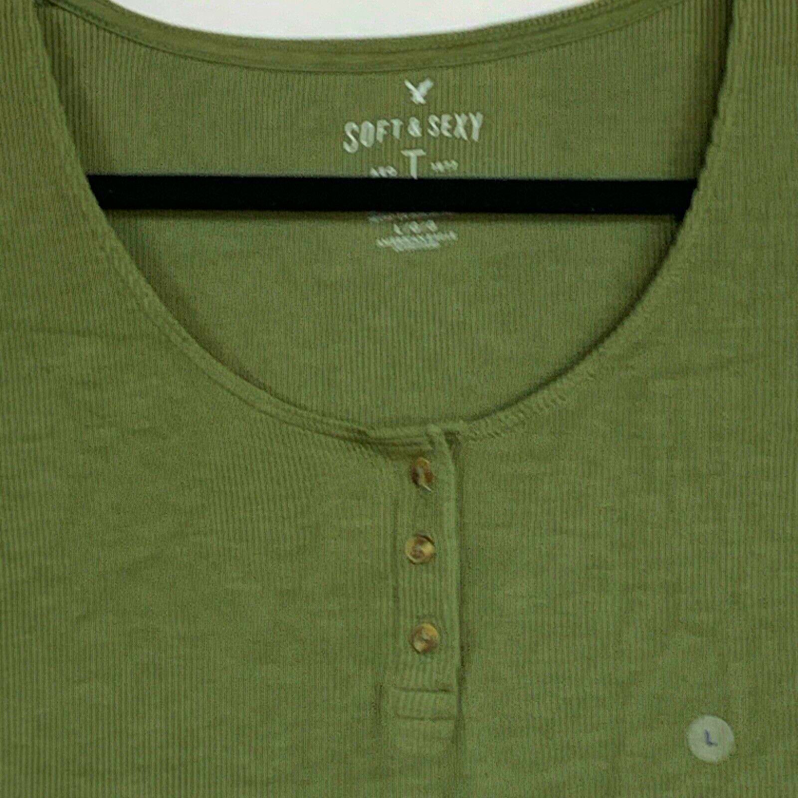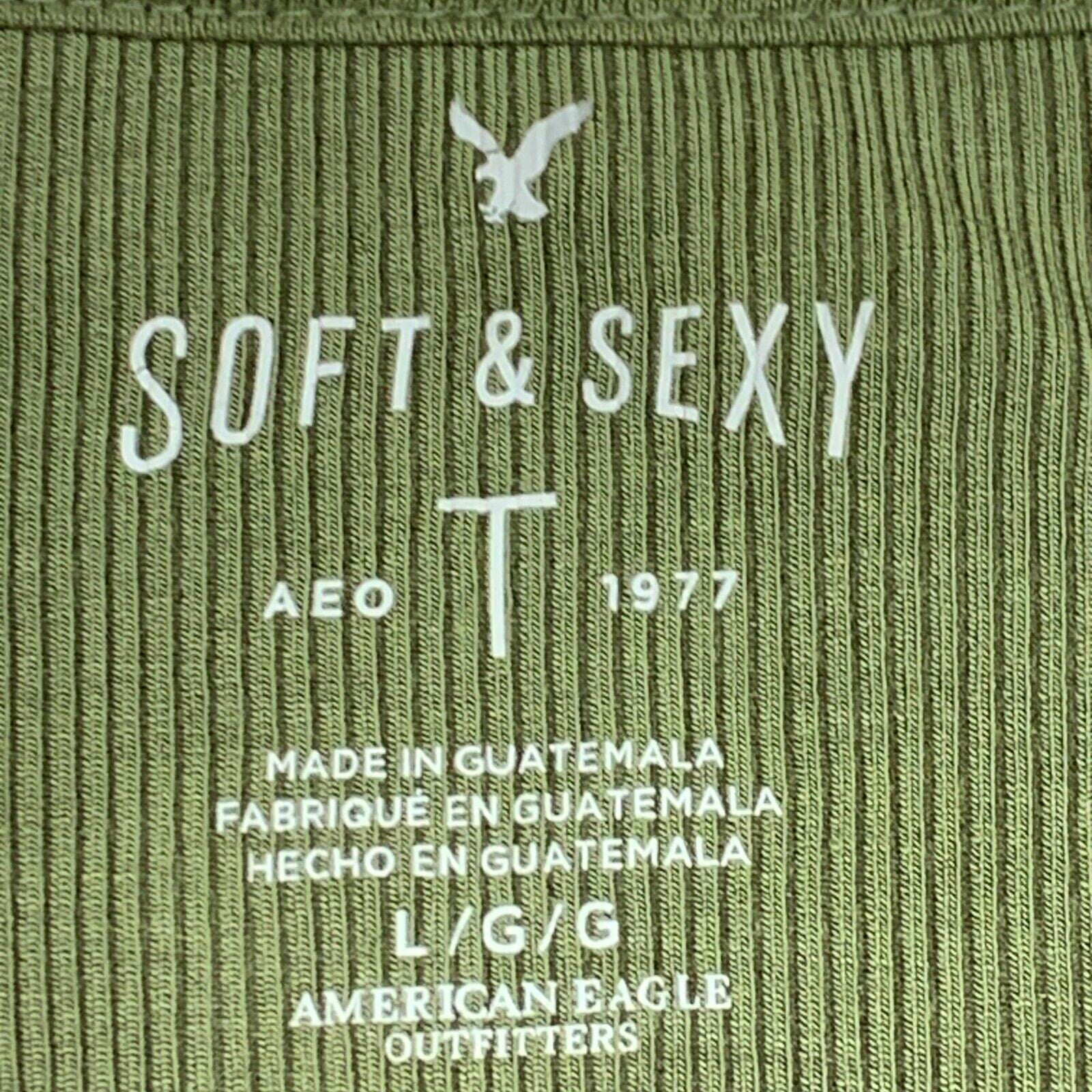American Eagle Top Womens Jr Large Green Short Sleeve Scoop Neck Knit Soft Sexy