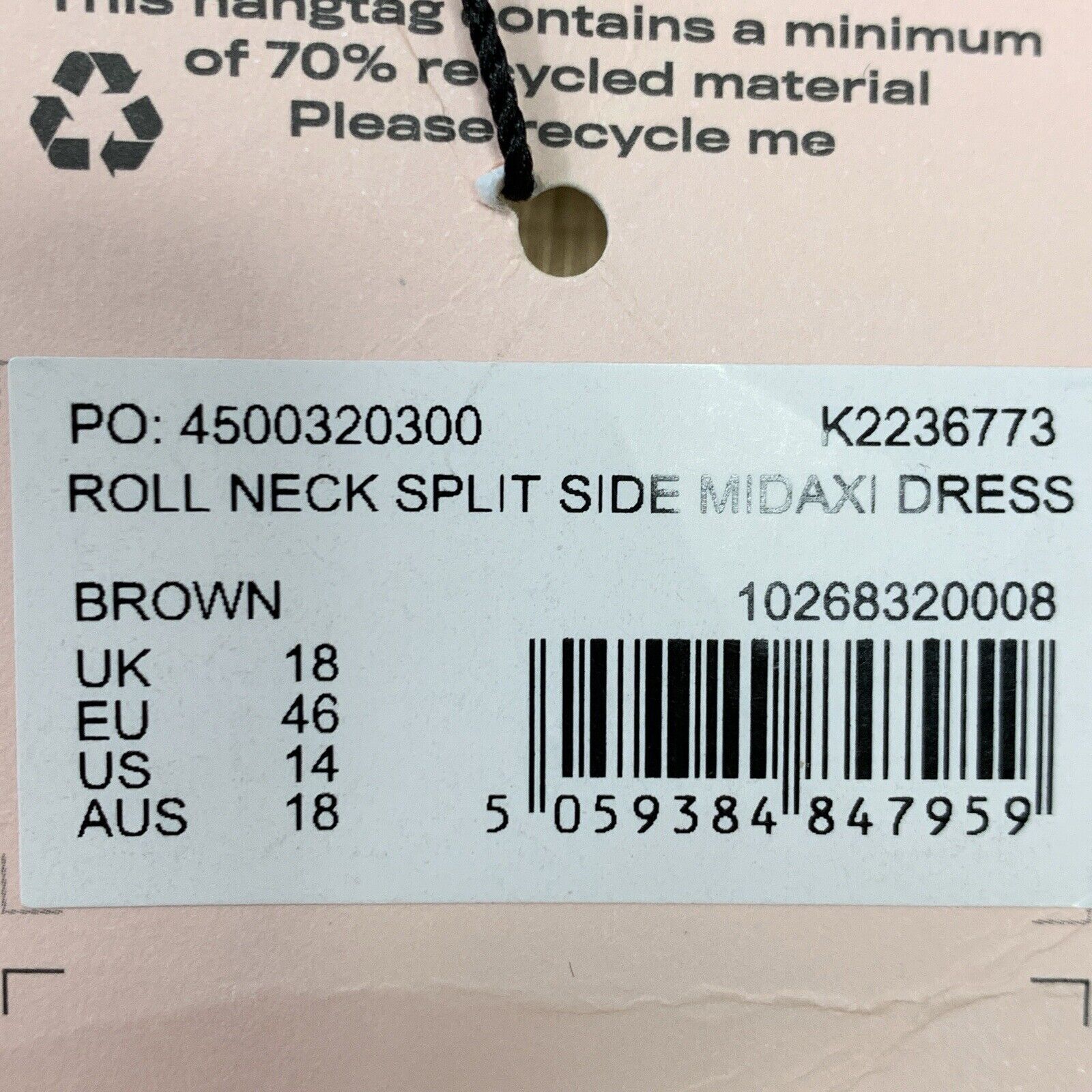Missguided Dress Womens 14 Brown Roll Neck Split Side Bodycon Sweater Knit New