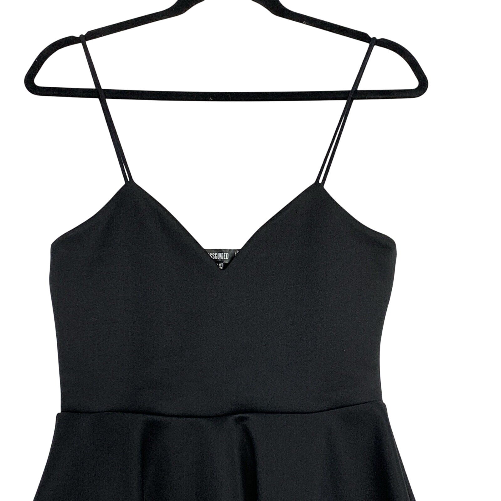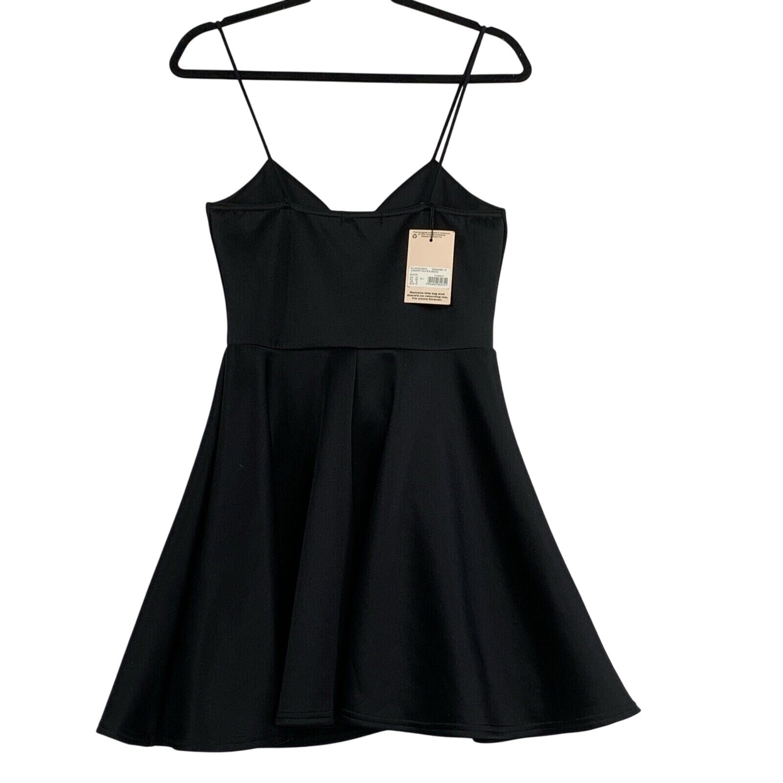 Missguided Dress Womens 6 Black Mini Fit and Flare Spaghetti Strap Vneck New