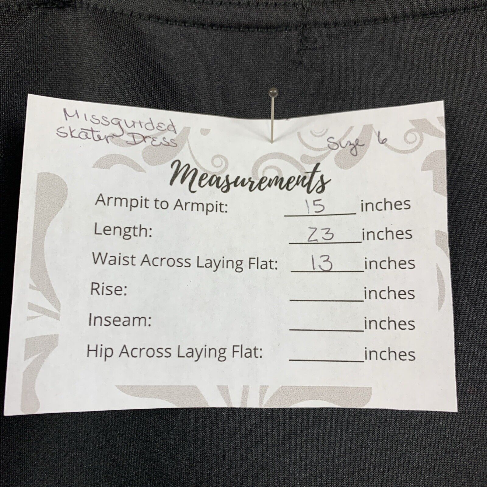 Measurements (flat lay):